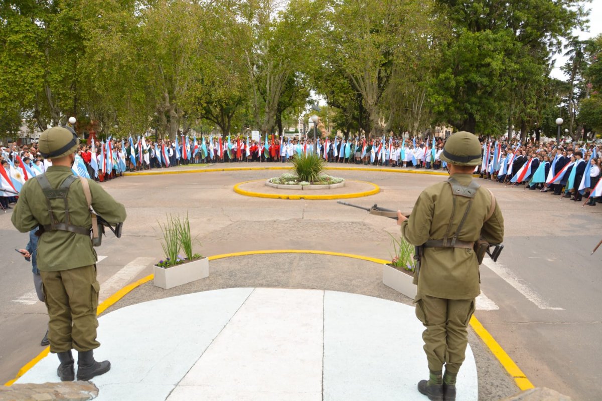 En el acto oficial a 41 años de la Guerra de Malvinas, organizado por la Municipalidad de Gualeguaychú y realizado en el monumento recordatorio de los héroes de Malvinas, en Sáenz Peña y Luis N. Palma, estuvieron presentes la viceintendenta Lorena Arrozogaray, concejales, autoridades de las fuerzas de la ciudad, funcionarios provinciales, municipales, Instituciones Educativas de la ciudad y vecinos y vecinas.