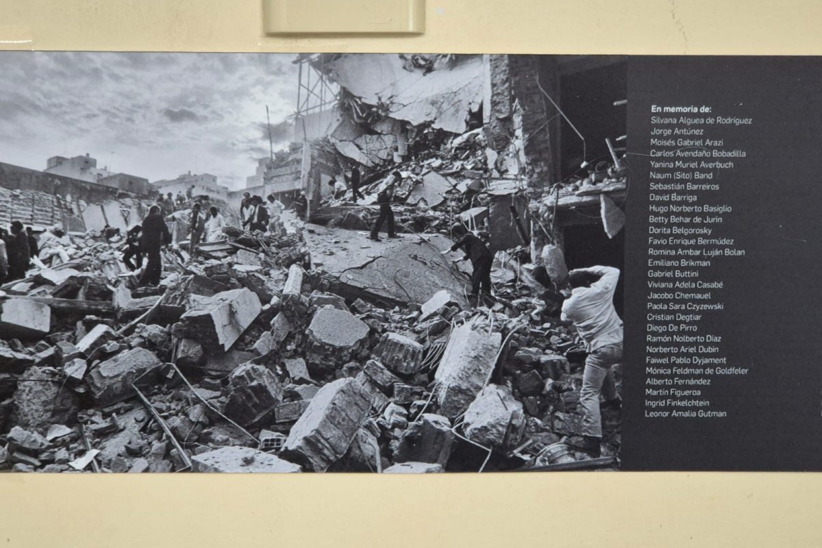 La muestra pertenece al "Álbum de Memoria", del fotógrafo Julio Menajovsky, uno de los primeros reporteros gráficos en llegar a Pasteur 633, ese fatídico 18 de julio de 1994. La exposición fue proporcionada por el Departamento de Arte y Producción de AMIA y es una pequeña, pero significativa recopilación de imágenes que capturan momentos importantes relacionados con el atentado.