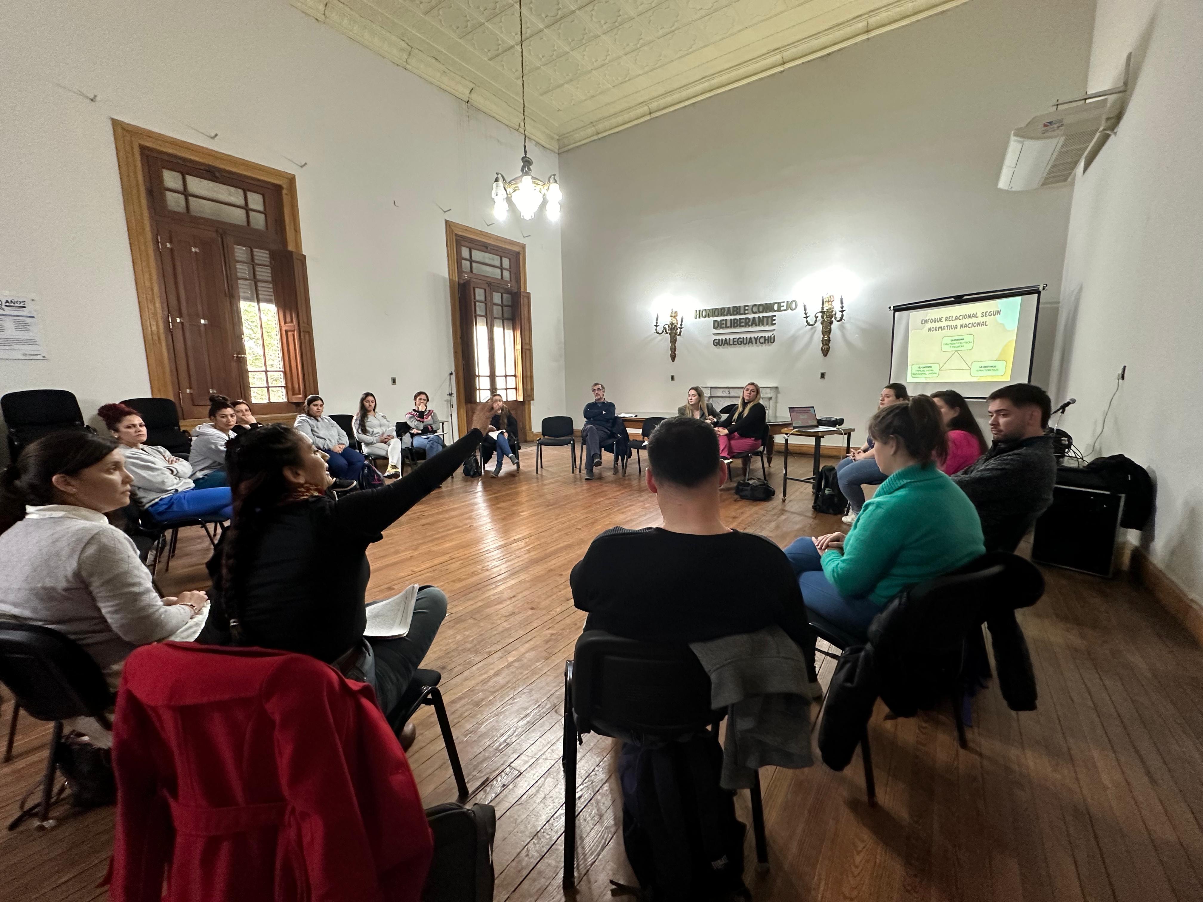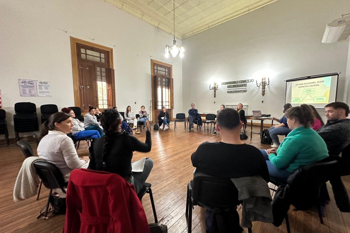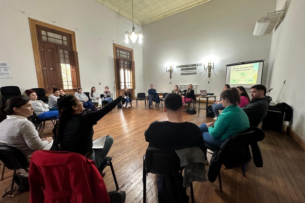 Durante la jornada, acompañó el secretario de Desarrollo Humano Juan Olano y se contó con la participación activa de representantes de diversas áreas clave como Juventud, Salud, Inspecciòn General y Educación. Todos ellos trabajaron de manera conjunta para definir los lineamientos y contenidos del taller, asegurando un enfoque integral y multidisciplinario.