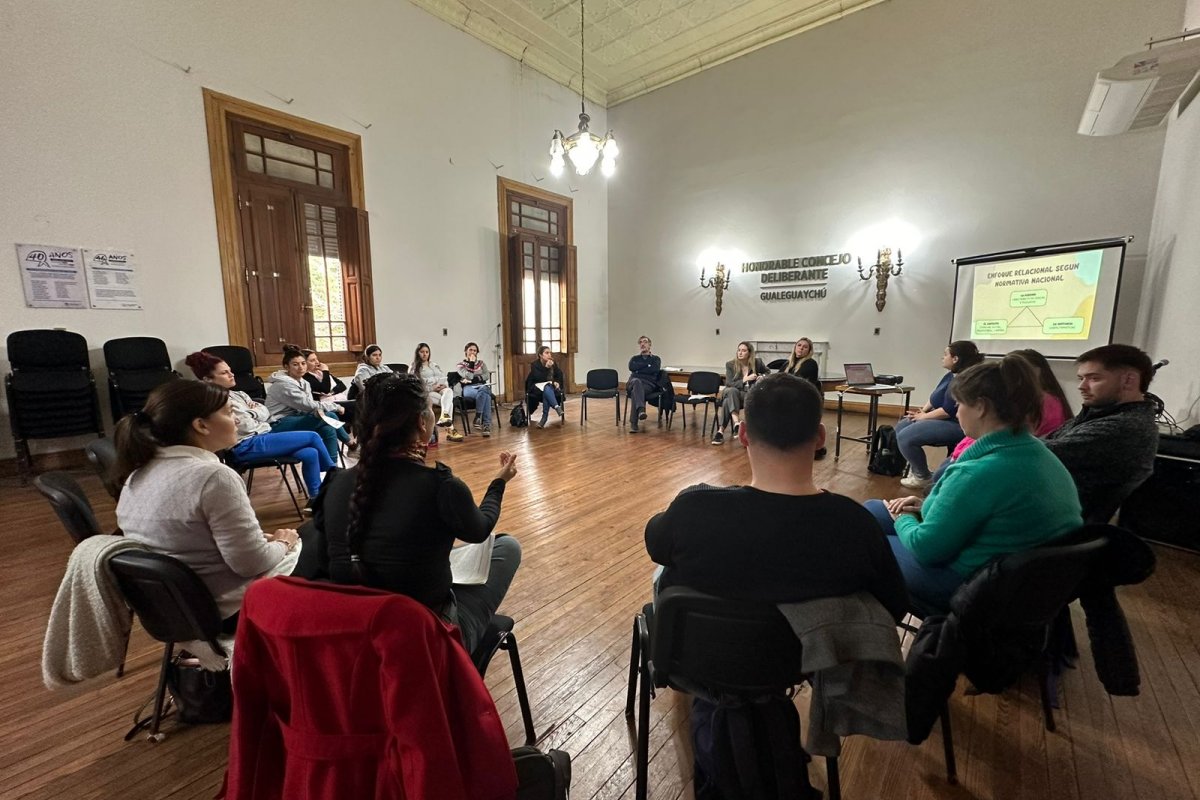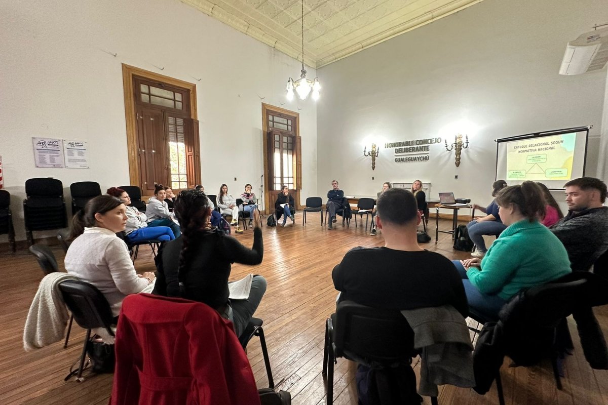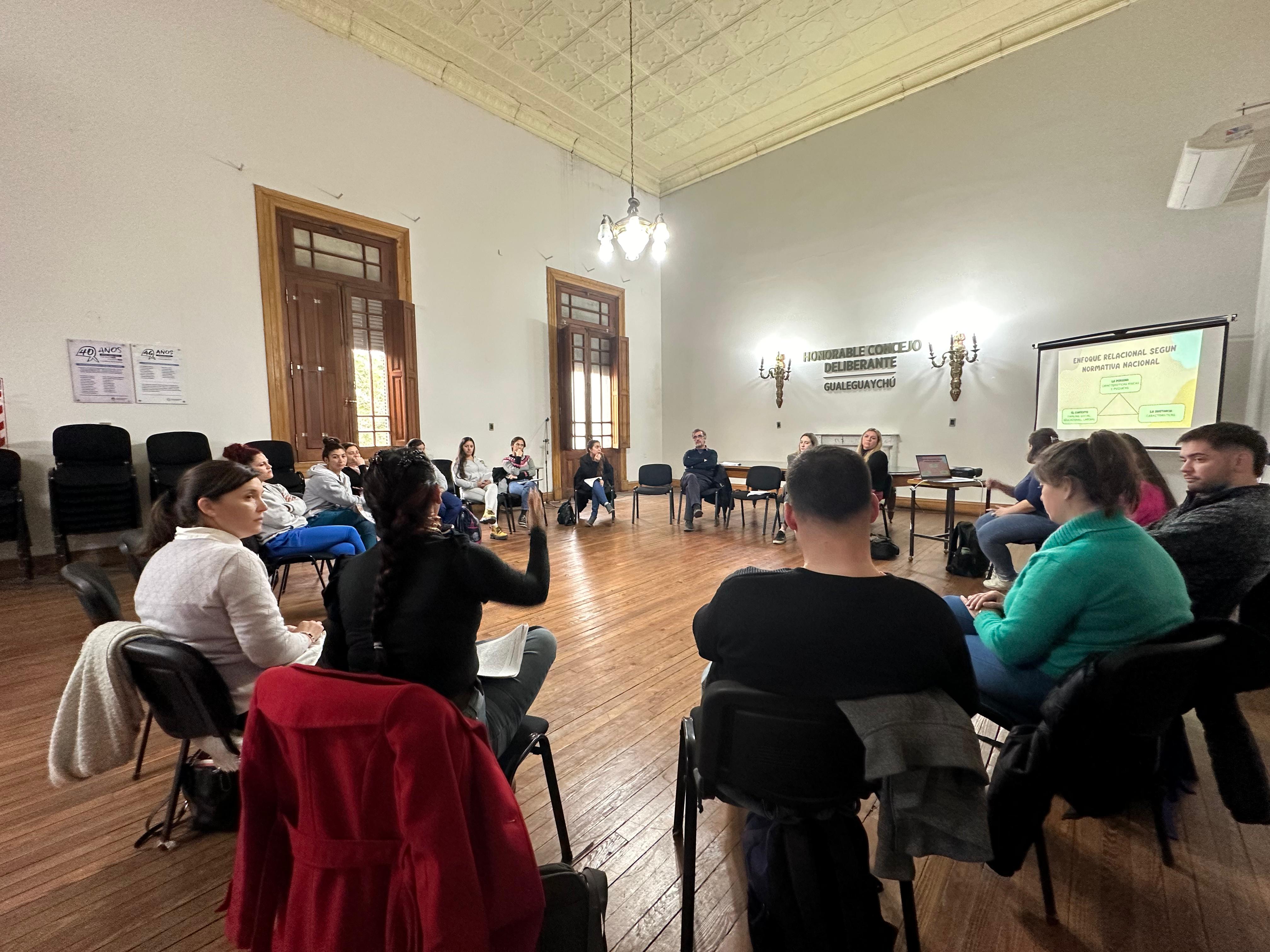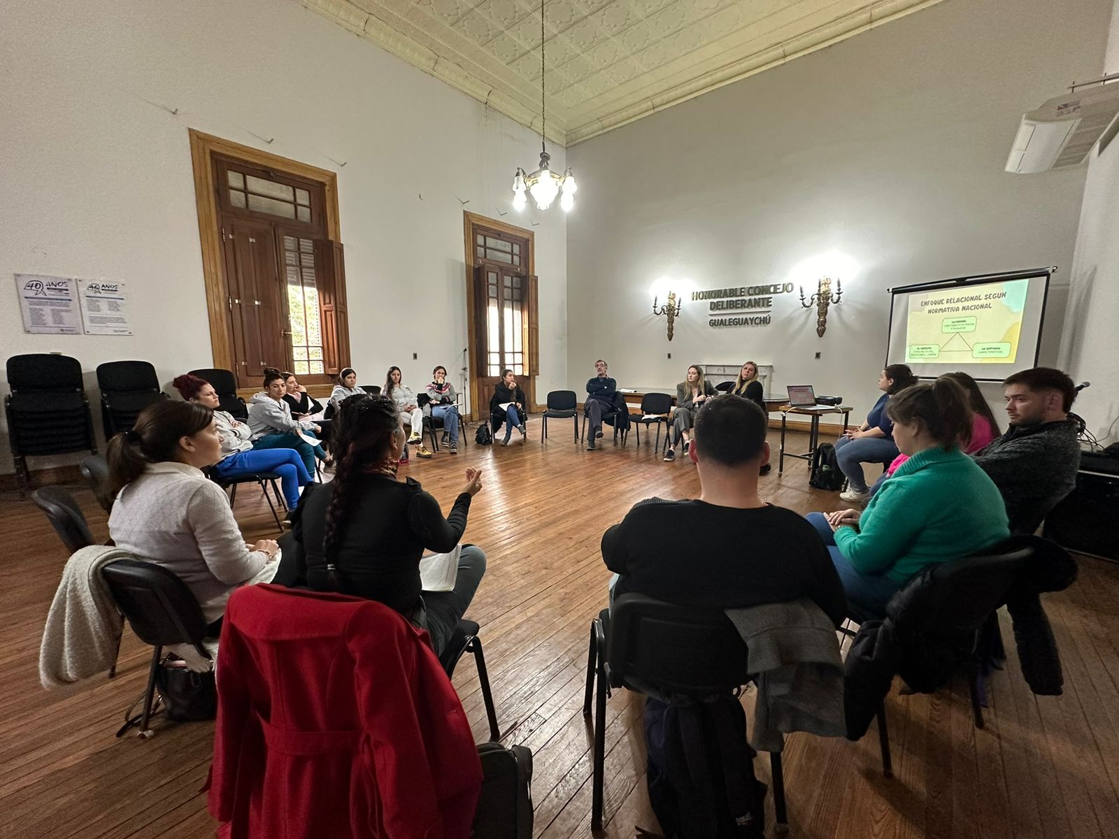 Durante la jornada, acompañó el secretario de Desarrollo Humano Juan Olano y se contó con la participación activa de representantes de diversas áreas clave como Juventud, Salud, Inspecciòn General y Educación. Todos ellos trabajaron de manera conjunta para definir los lineamientos y contenidos del taller, asegurando un enfoque integral y multidisciplinario.