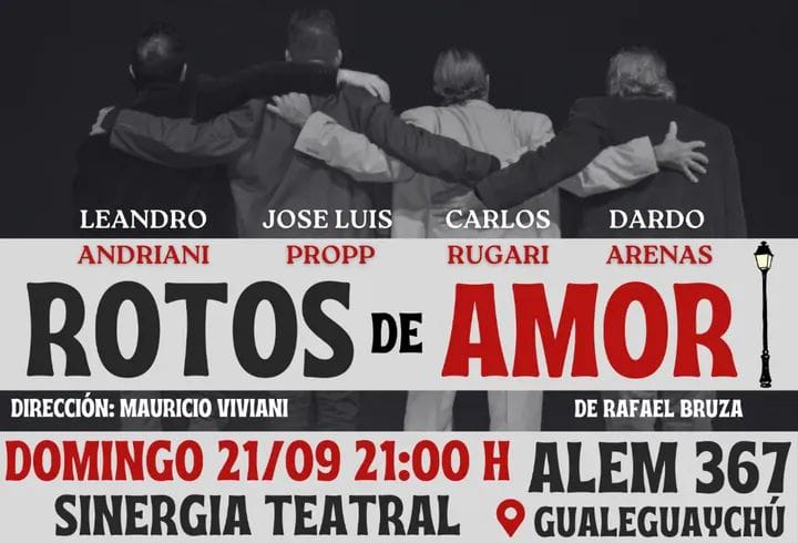 Toda historia tiene una tristeza. Empieza con una esperanza y termina con algo que muere. Toda historia tiene un sabor desagradable. Uno empieza relamiéndose los labios y termina con dolor de estómago. Toda historia tiene un espanto. Se empieza como jugando y se termina con los ojos fuera de las órbitas. Toda historia tiene un fracaso. Nosotros éramos ese fracaso. El corazón y el tango en carne viva. Club de Caballeros ROTOS DE AMOR.