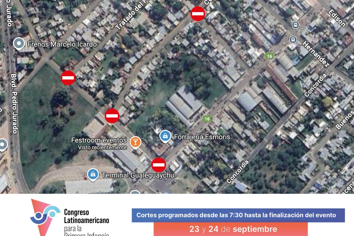 El Gobierno de Gualeguaychú informa que con motivo de la realización del Congreso Latinoamericano para la Primera Infancia, se implementarán cortes y desvíos de tránsito en calles aledañas al Salón de Eventos Festroom (Bozzano 672), donde se desarrollará el encuentro.