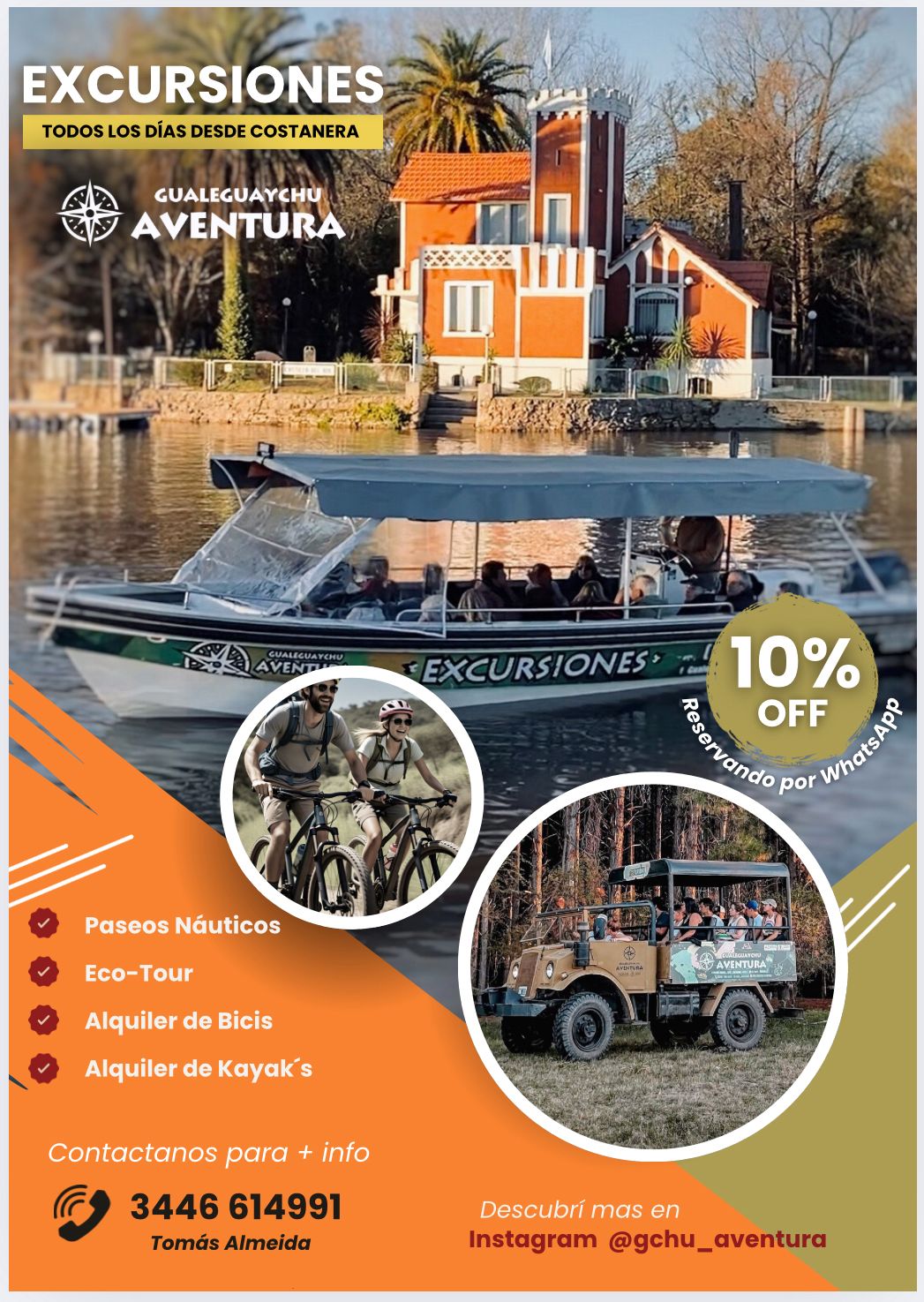 16 a 17 h: paseo en lacha río Gualeguaychú