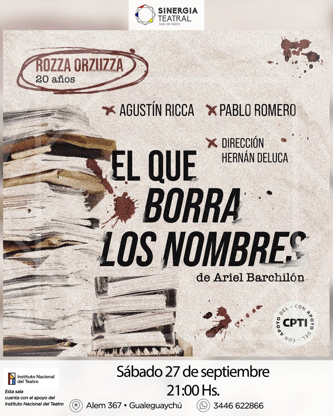 La obra, escrita por el autor argentino Ariel Barchilón, es una metáfora y reflejo de un sistema de pensamiento de una sociedad que cada vez que no trabaja para recuperar su identidad, está borrando un nombre.