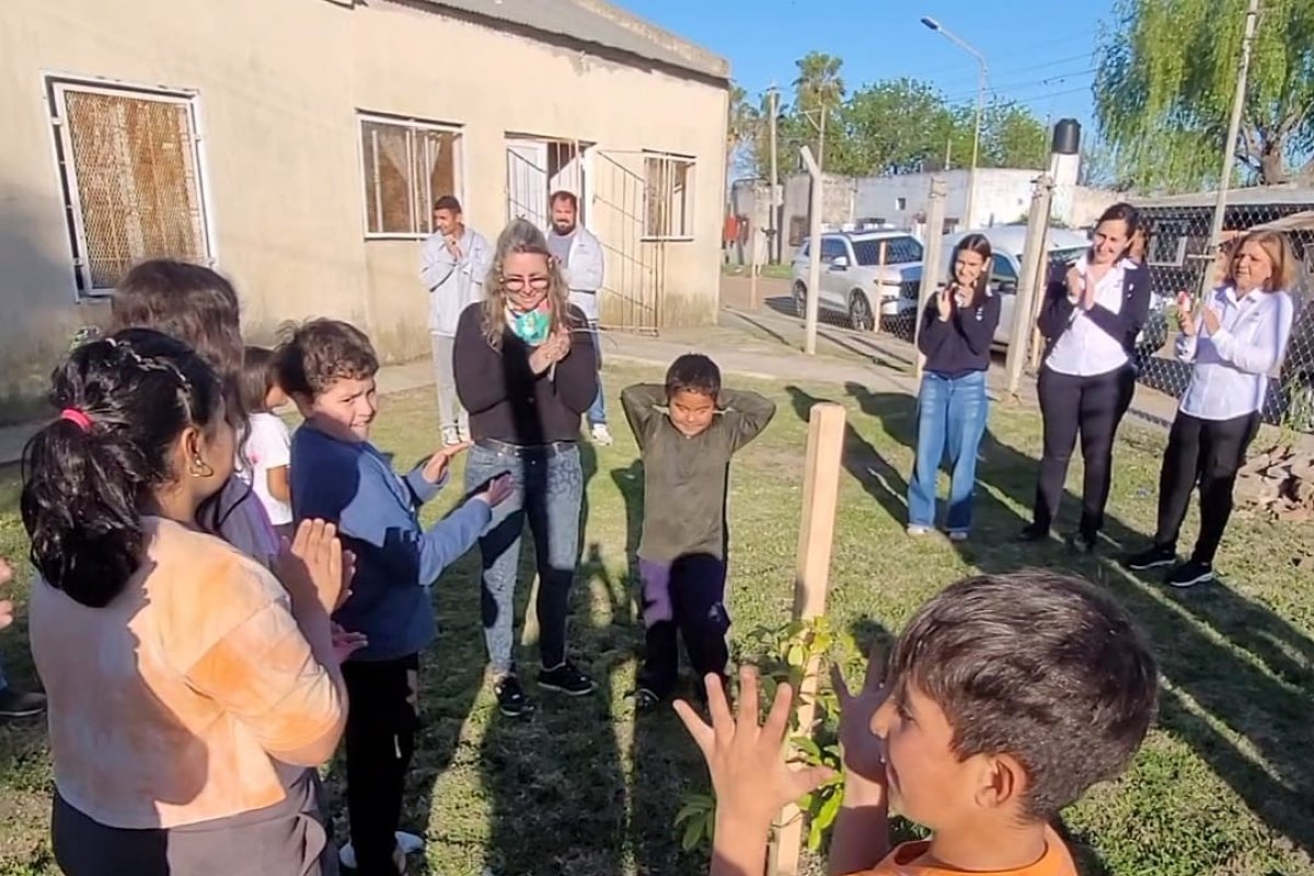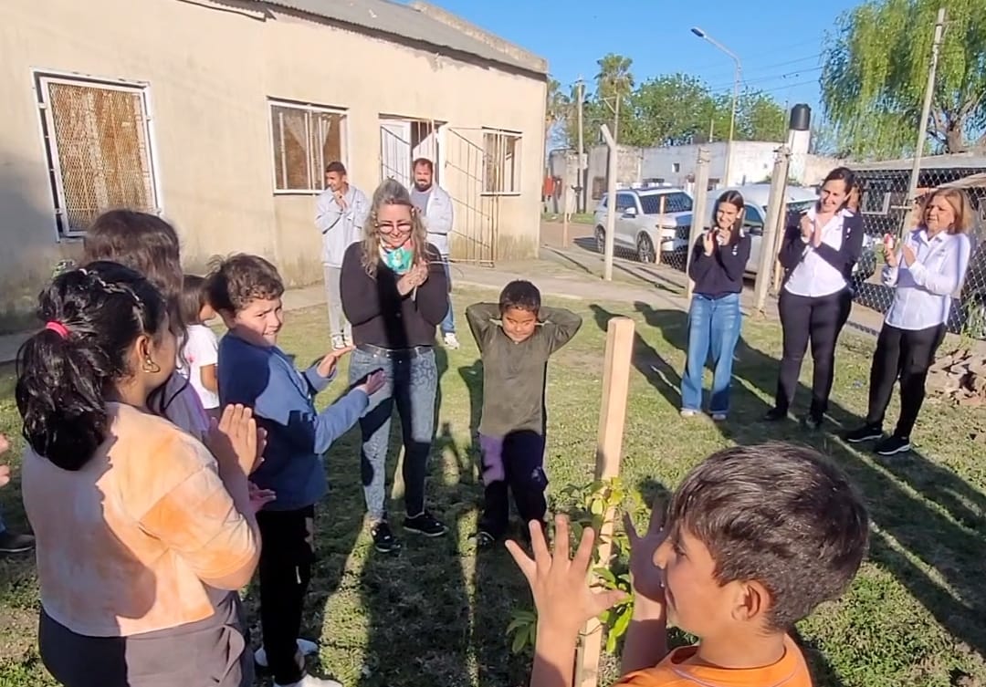 En el marco del Programa de Educación Ambiental, los chicos que asisten a clases de apoyo en el SUM del barrio La Cuchilla participaron en una actividad de plantación de árboles, cuentos y aprendizaje sobre el cuidado del ambiente.