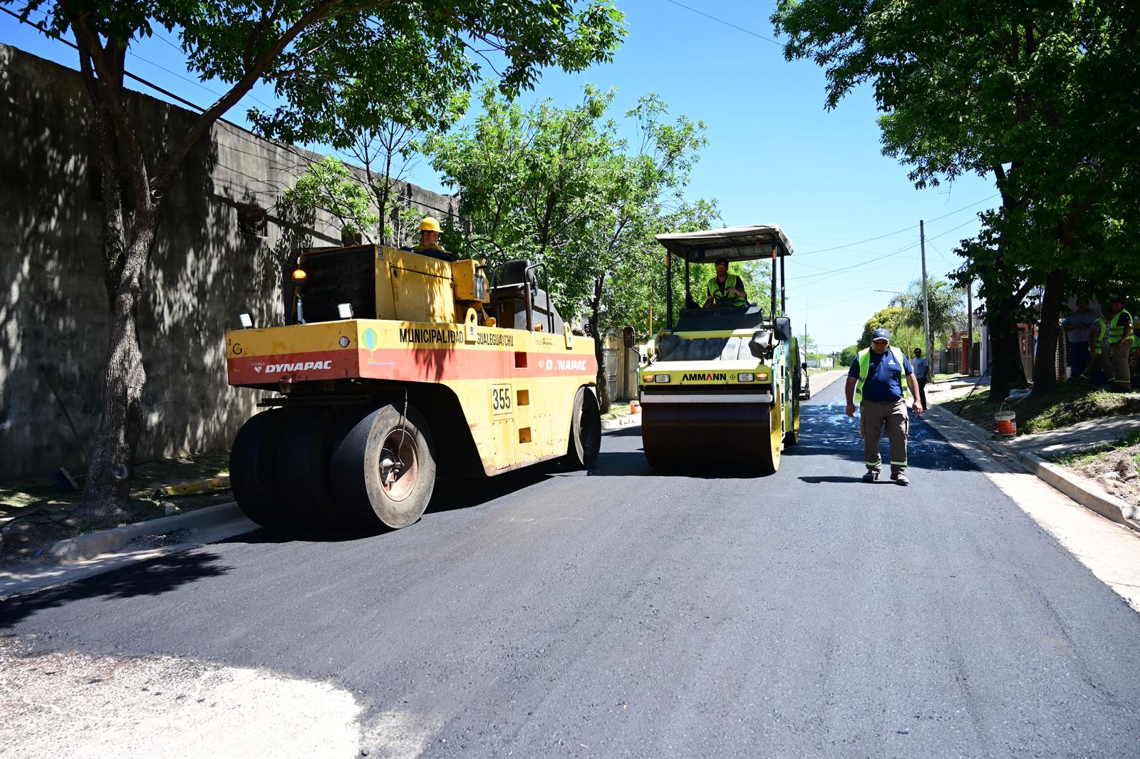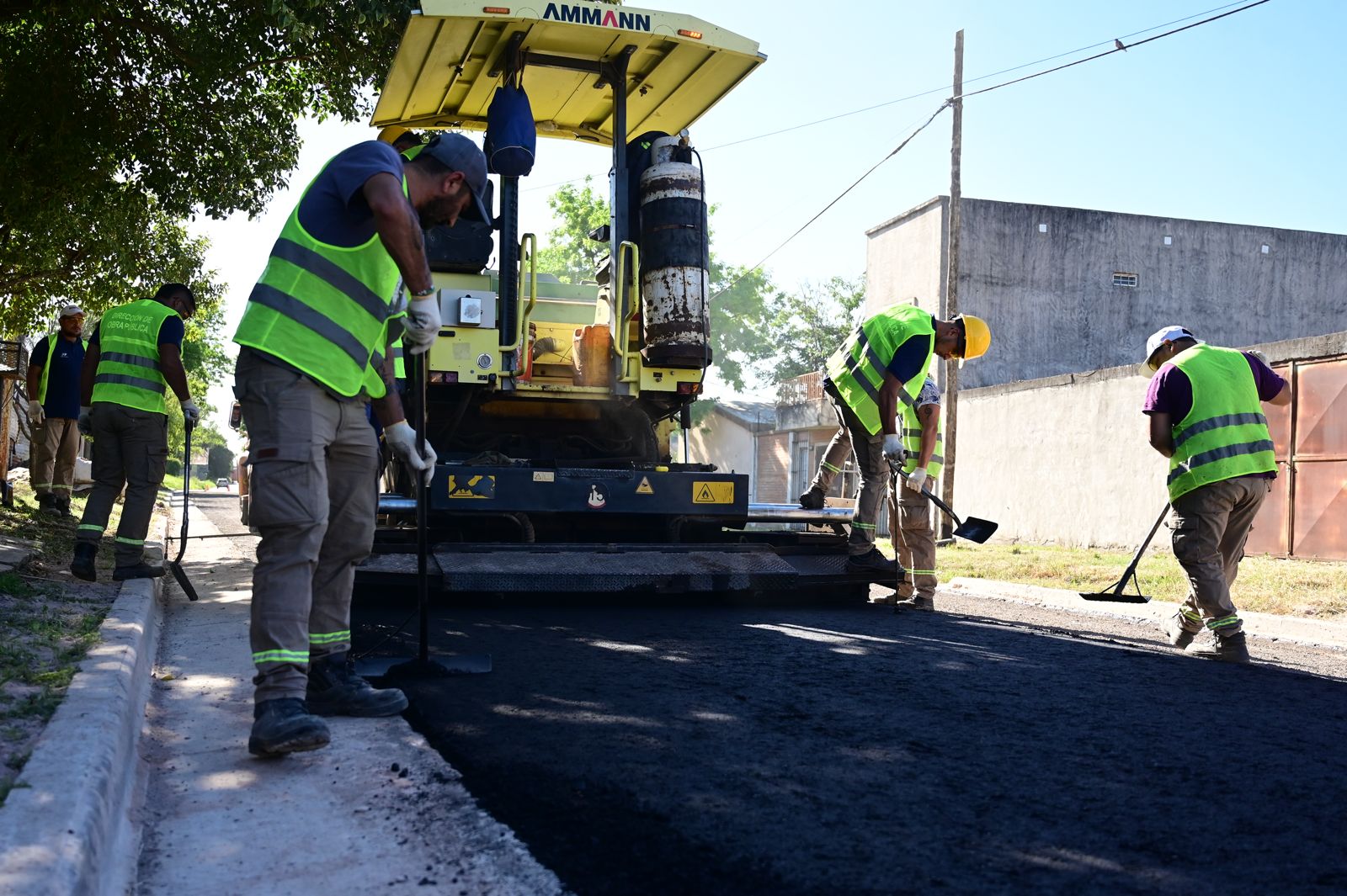En esta primera intervención se utilizaron 170 toneladas de mezcla asfáltica caliente, trasladadas desde el Parque Industrial en camiones con capacidad de 8.000 kilos cada uno, que realizaron un recorrido constante entre la planta y el primer consorcio vecinal, ubicado sobre calle San Martín, entre Hermanas Mercedarias y Nágera.