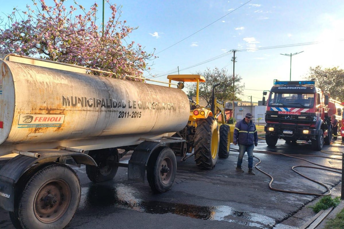 Durante el operativo trabajaron las unidades 29, 31, 36, 37 y 38 de Bomberos Voluntarios, además de maquinaria y cisternas municipales que fueron incorporadas para asistir en las tareas de recarga, enfriamiento y remoción de escombros. En este sentido, participaron la Dirección de Obras y Servicios Públicos —con una cargadora frontal y un tractor con pala— y la Dirección de Higiene Urbana —con cisternas de agua—, que reforzaron el trabajo de las cuadrillas en el terreno.