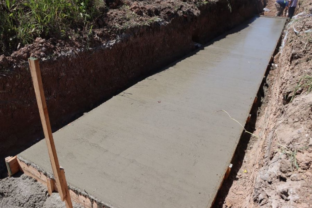 Durante la primera jornada de trabajo coordinado entre la cuadrilla municipal y los equipos de obra se utilizó una retroexcavadora para abrir la zanja con la profundidad y pendiente adecuadas, mientras que el personal de Obras Públicas realizó la colocación de encofrados de madera, el vertido del hormigón y su nivelación manual, lo que aseguró la compactación necesaria para la resistencia estructural. Sobre la superficie se utilizaron herramientas manuales como palas, picos y reglas metálicas que permitieron dar forma y terminación a la losa del conducto.