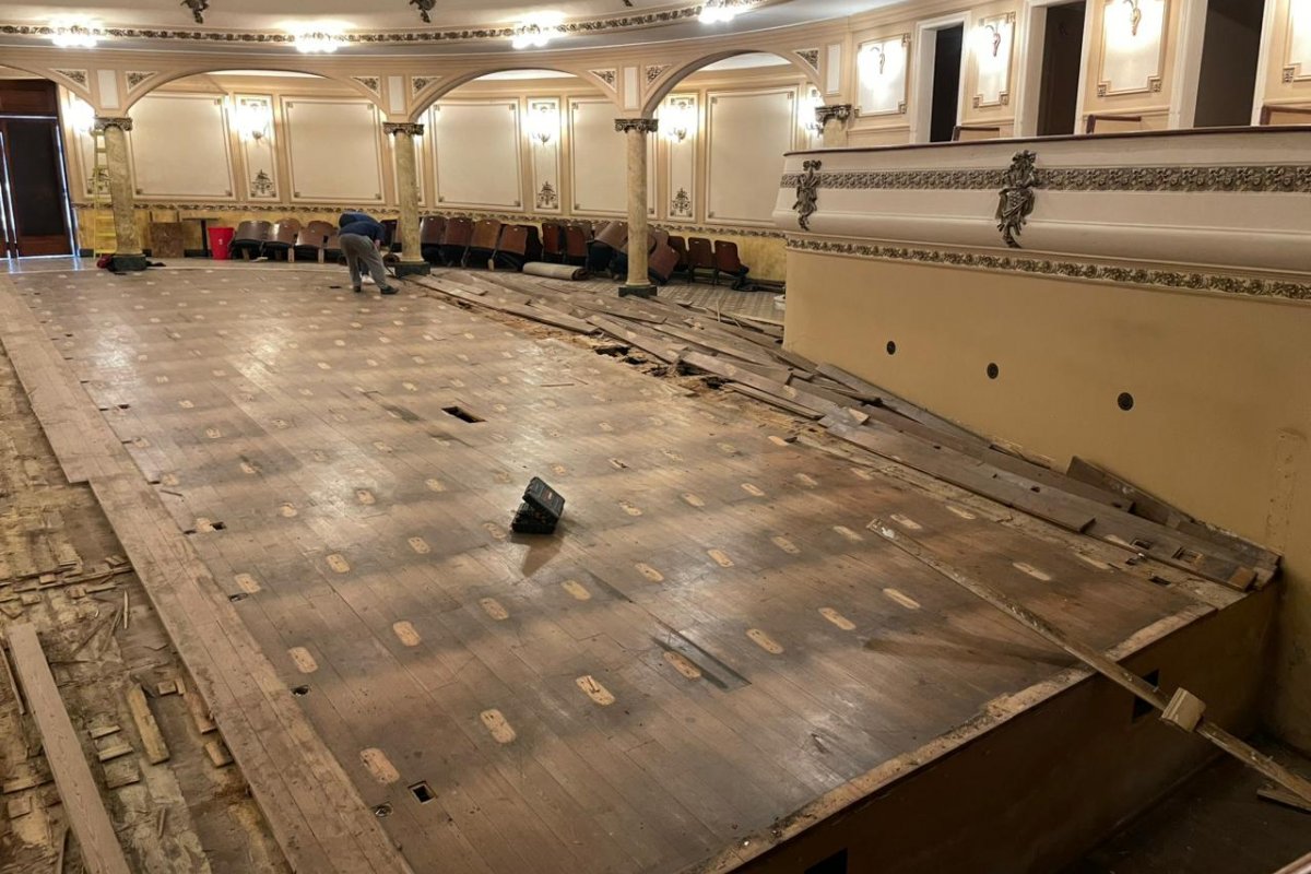 Comenzó la remoción del piso del Teatro Gualeguaychú para reparar toda la estructura