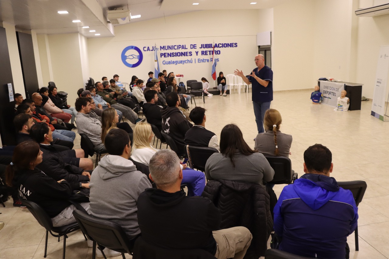 En ese mismo marco de formación continua, anoche a las 20 horas, en el salón de la Caja Municipal de Jubilaciones (Mitre 34), se desarrolló una capacitación sobre primeros auxilios dirigida a guardavidas de nivel 2 y auxiliares, con una destacada participación de más de 50 asistentes.