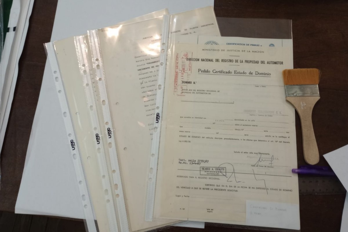 En el Museo de la Memoria Popular, las estudiantes Karen Nyszczczuk y Priscila Cajigas participaron en tareas de conservación del Archivo Ángel Piaggio, recientemente donado a la institución. Allí aplicaron técnicas de limpieza y preservación de documentos, retirando elementos que comprometen su integridad, como ganchos y clips metálicos, y reemplazando contenedores ácidos por materiales adecuados.
