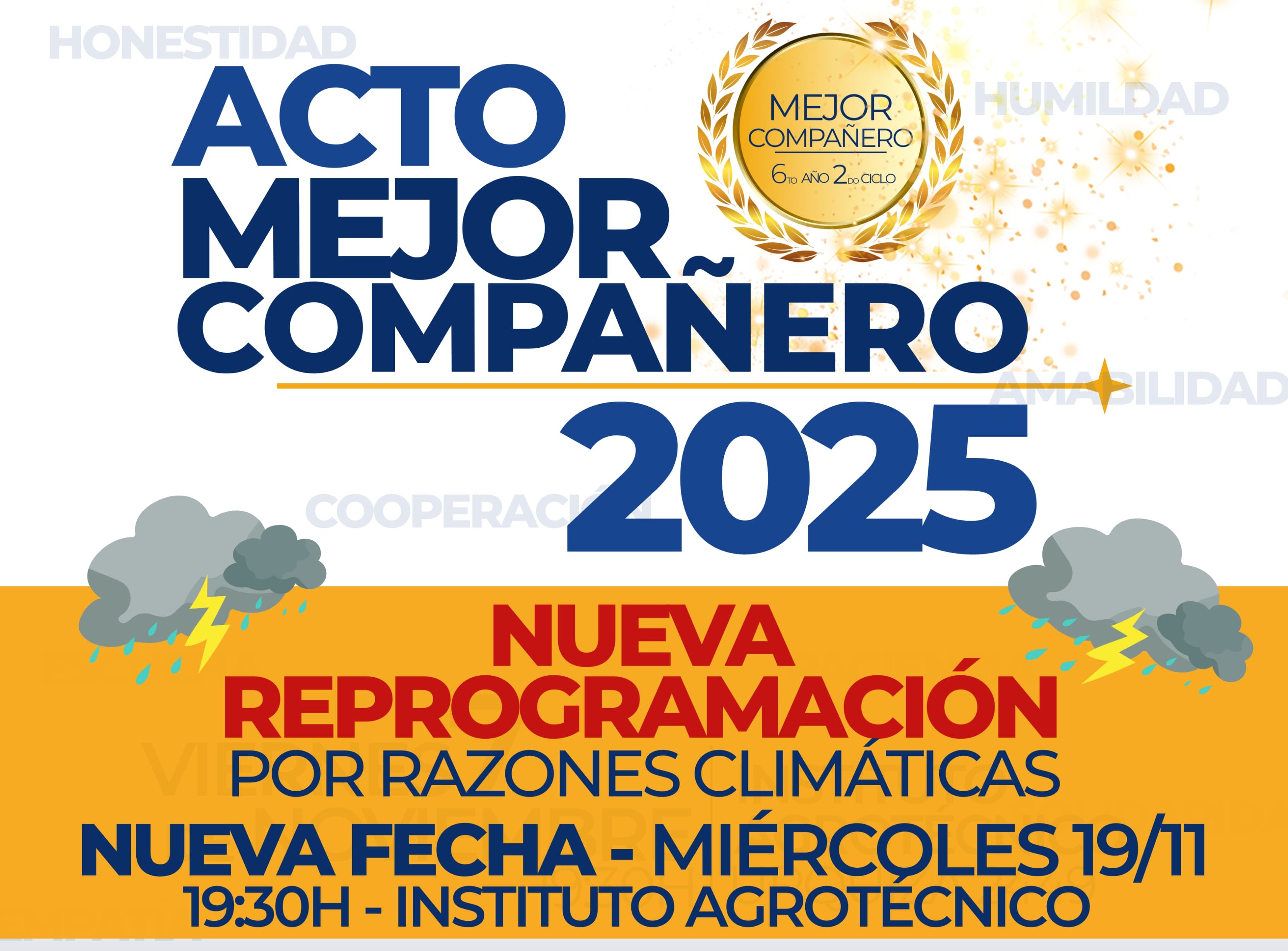 Por cuestiones climáticas, se decidió una nueva reprogramación para el acto de entrega de recordatorios que será el miércoles 19 de noviembre a las 19:30 h, en el salón del Instituto Agrotécnico (Urquiza 2449).