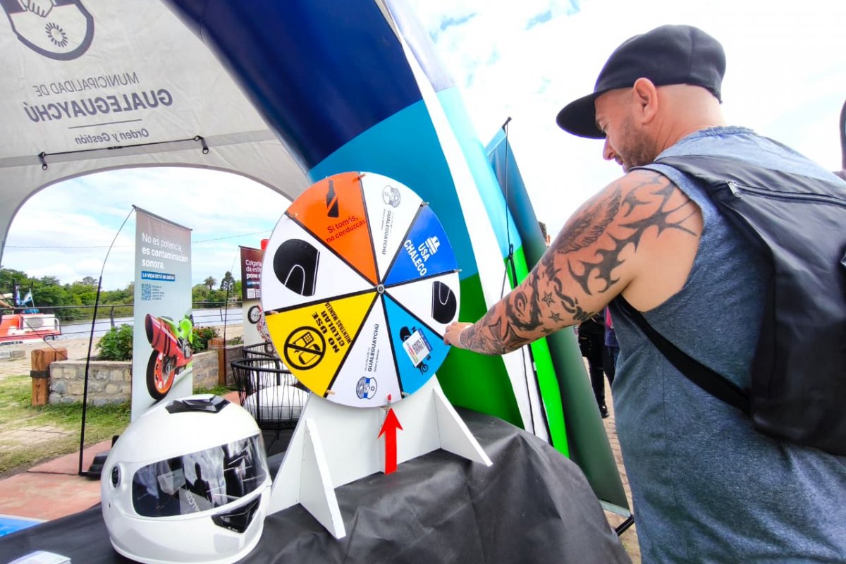 El Área de Educación Vial, dependiente de la Dirección de Tránsito, participó este sábado en la Expo Moto Gualeguaychú 2025, que se desarrolla en los Galpones del Puerto, con el programa “Usá la cabeza, ponete el casco”, en el marco de las políticas públicas de promoción de la seguridad vial.