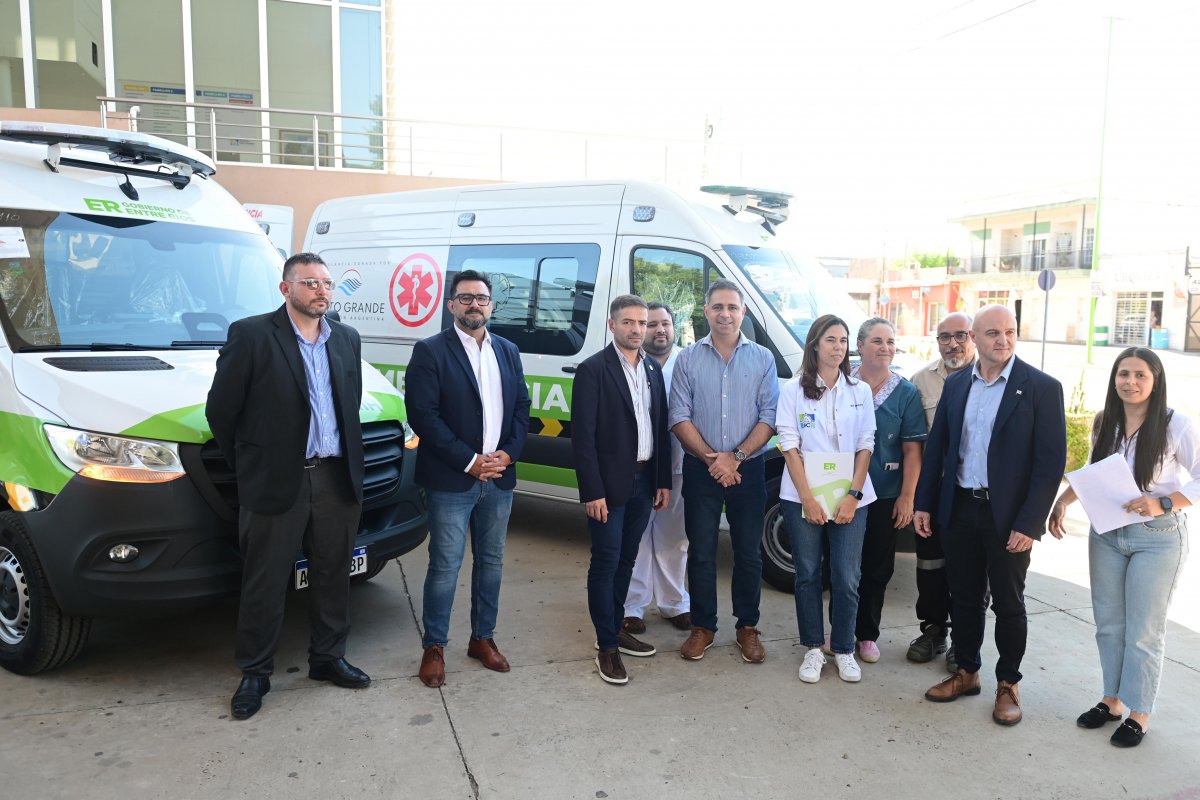 El intendente Mauricio Davico participó este jueves en la recepción de dos nuevas ambulancias de alta complejidad destinadas al Hospital Centenario de Gualeguaychú. La entrega se realizó en un trabajo conjunto con el ministro de Salud de Entre Ríos, Daniel Blanzaco; el secretario de Salud de la provincia, Daniel Valentinus; el director general de Hospitales, Mauro González; y el director de Emergencias Sanitarias, José Cáceres. También estuvieron presentes el jefe de Gabinete, Luciano Garro; el secretario de Gobierno y Modernización, Manuel Olalde; y el subsecretario de Salud, Pablo Alfaro.