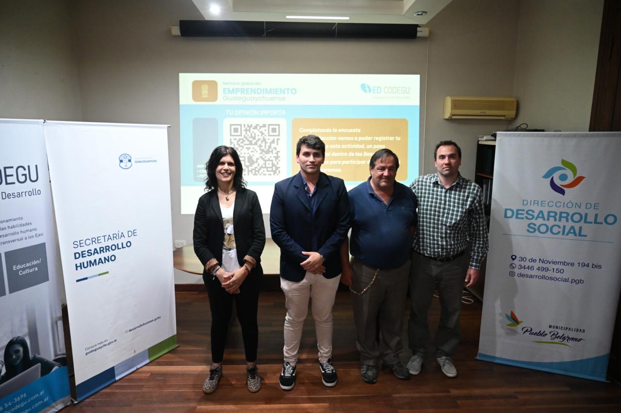 Se puso en marcha la Semana Global del Emprendimiento 2025, una iniciativa internacional que promueve la creación, el crecimiento y la consolidación de proyectos a través de espacios de formación y encuentro. El lanzamiento oficial contó con la presencia de Juan Ignacio Olano, secretario de Desarrollo Humano; Tomás Fogg, presidente de CODEGU, y Marcos Miotti, responsable de la Oficina de Empleo de Pueblo Belgrano, quienes acompañaron el inicio del ciclo y destacaron la importancia de generar políticas que fortalezcan el entramado productivo local.
