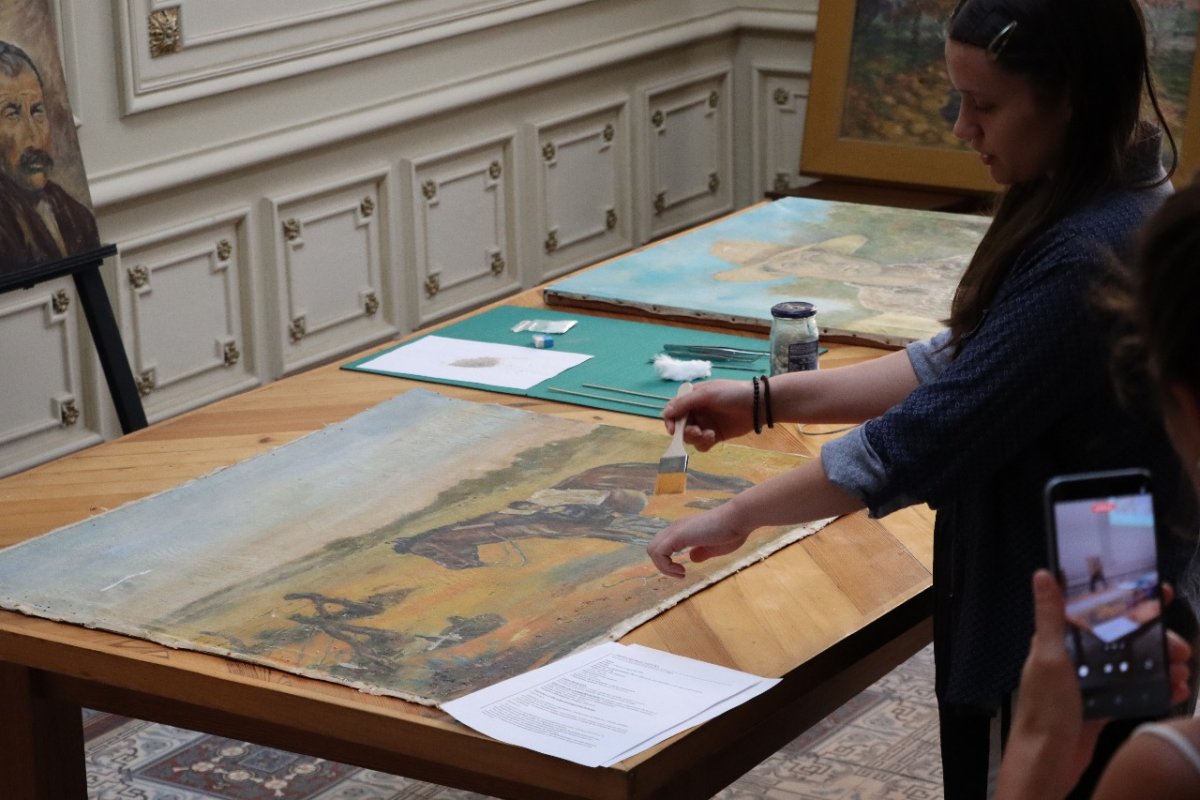 Estudiantes del ISA D-162 finalizaron la cátedra de Conservación de Obras con la puesta en valor de pinturas de Alberto Arigós de Elía, en una experiencia articulada entre la Dirección de Cultura y el Museo de la Memoria Popular.