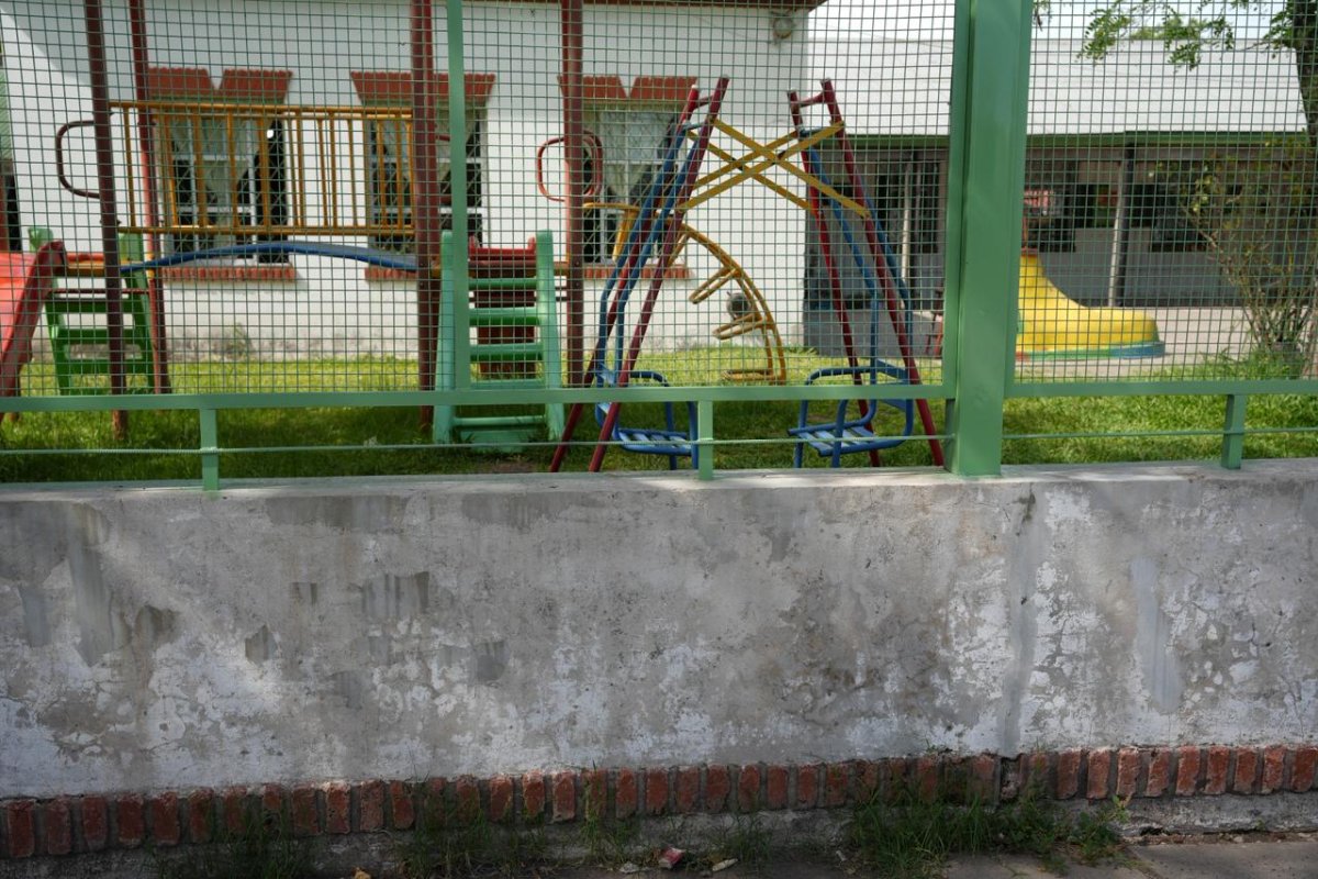 Antes del inicio de las obras en el frente, el Municipio realizó el mantenimiento de los juegos de la plaza que se encuentra frente al edificio.
