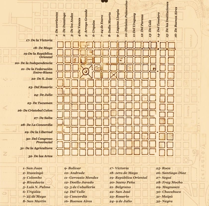 “La Villa de Gualeguaychú comprende treinta y tres calles y dos plazas, cuyos nombres y situación se especifican en el Plano tipográfico…”