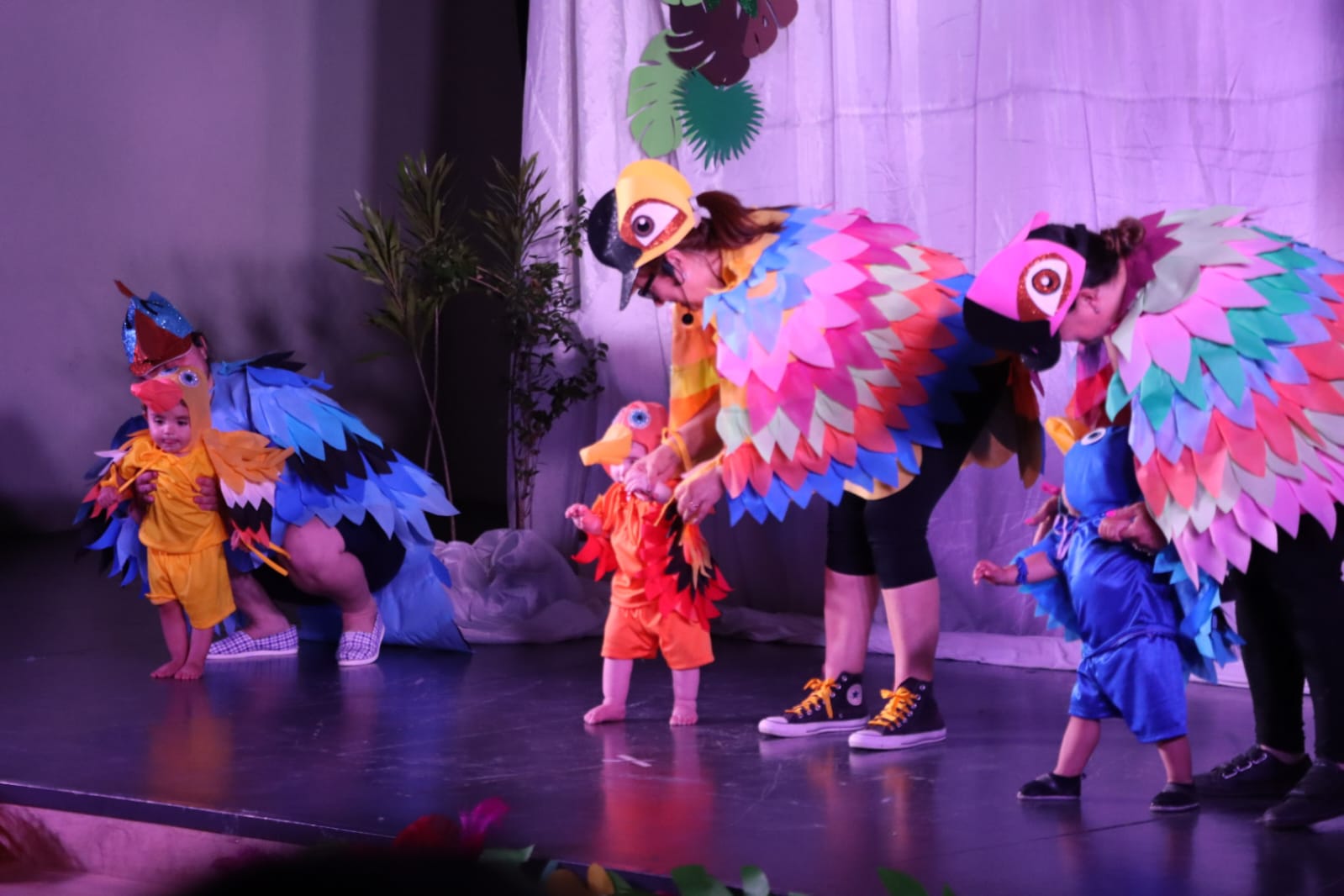 Uno de los momentos centrales fue la presentación de la historia del pájaro Pipo, un cuento original creado por las docentes especialmente para este cierre. La narración relató el viaje del pájaro Pipo a Río y fue interpretada por todas las salas del EMPI, con niños disfrazados de pájaros que recrearon vivencias y aprendizajes del año. La sala de tres sumó un baile con música brasileña que aportó color y dinamismo. El cuento dejó como mensaje que cada niño “vuela a su tiempo y a su manera”, resaltando el respeto por los procesos individuales.