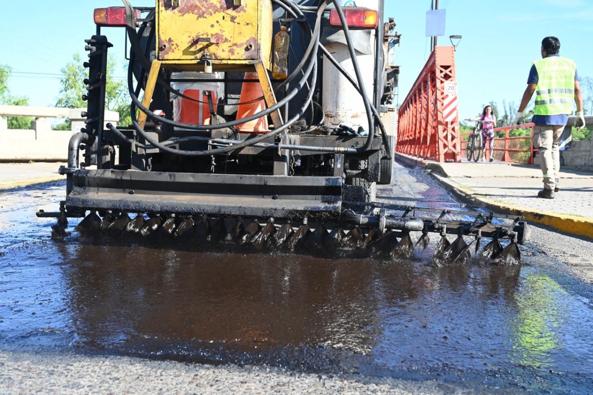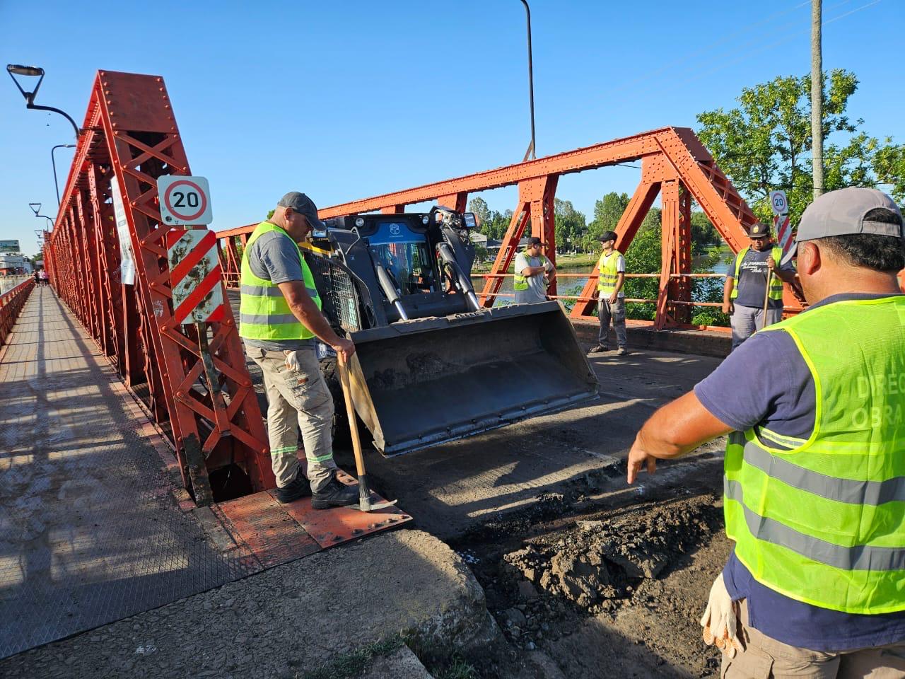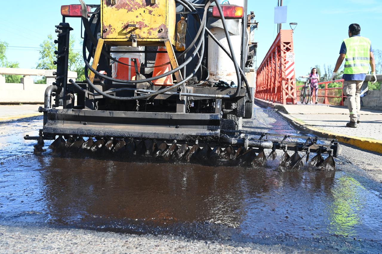 La intervención incluyó tareas adicionales sobre los laterales metálicos, donde el personal ajustó bordes y repasó sectores con material asfáltico para consolidar el sellado. Con esta instancia completada, la estructura queda lista para recibir el nuevo asfalto, que sellará el proceso de restauración y devolverá al puente su capacidad plena de servicio.