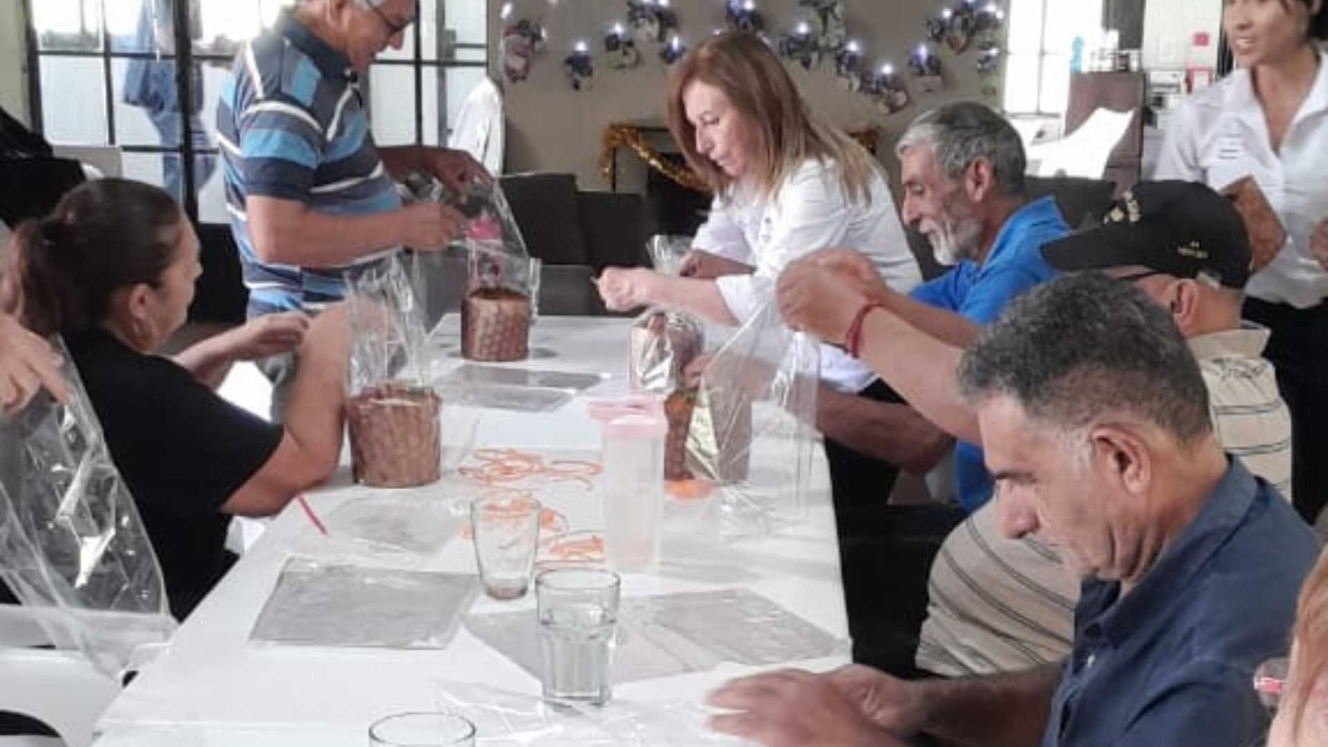 En el Centro Municipal de Día “De Cara al Sol”, otro grupo de adultos mayores participó del envasado y empaquetado de los pan dulces elaborados en el taller “Recetas del Corazón”, impulsado por la Secretaría de Desarrollo Humano.