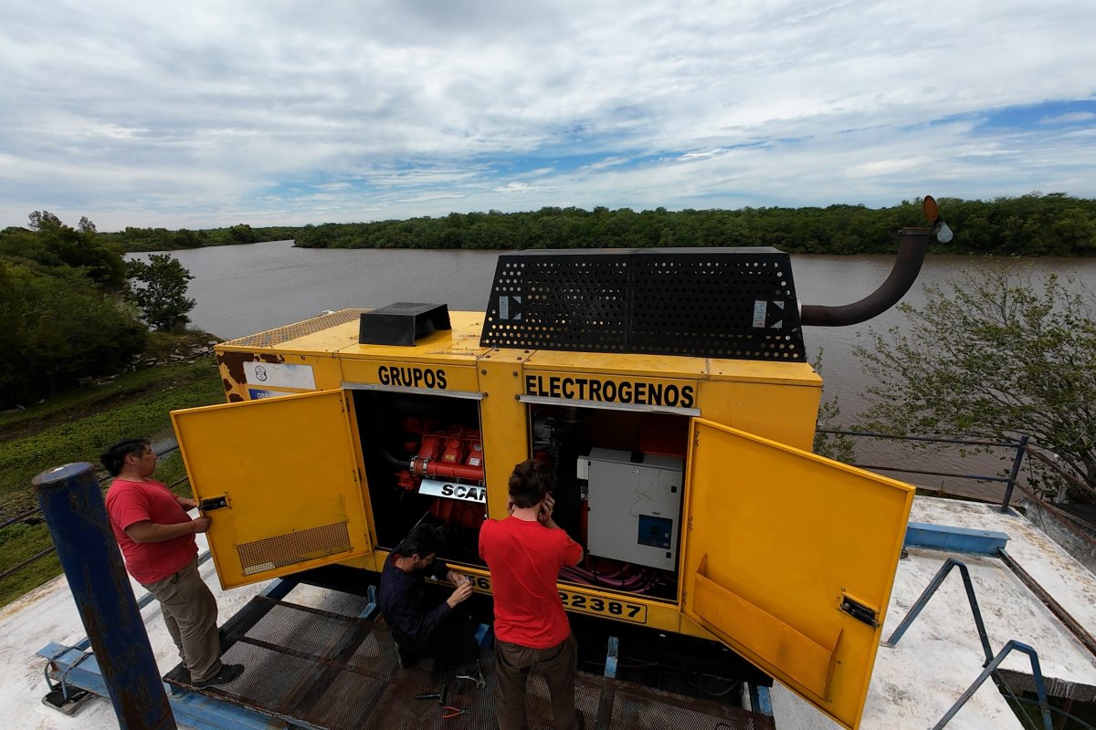 Por su diseño, prestaciones y nivel tecnológico, el grupo electrógeno está orientado al respaldo de servicios esenciales, como en este caso el sistema de bombeo de agua desde el río hasta la planta de Obras Sanitarias.