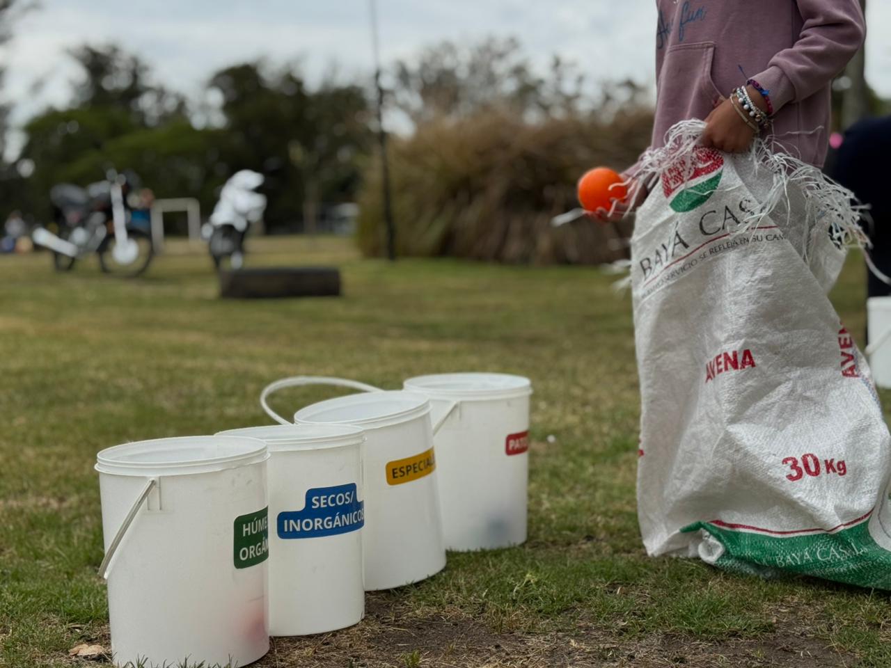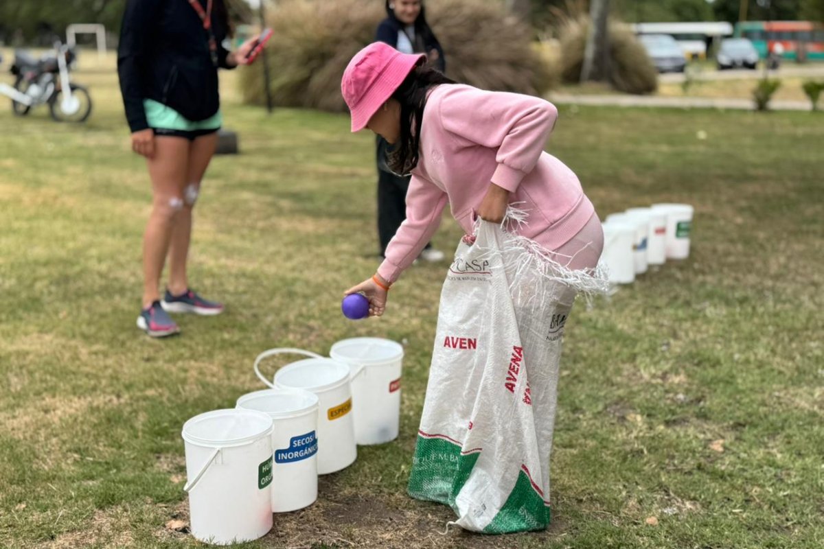 Luego de la instancia teórica, se desarrolló una propuesta lúdica pensada para reafirmar los saberes adquiridos. La actividad consistió en un juego tipo carrera de embolsados, en el que los chicos debían trasladar pelotitas que simulaban residuos y clasificarlas correctamente en los distintos tachos, según el tipo de desecho correspondiente.