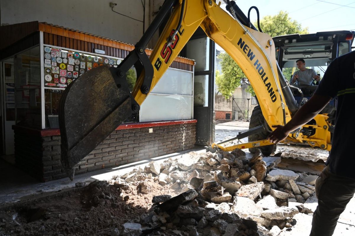 El Gobierno de Gualeguaychú, a través de la Secretaría de Desarrollo Territorial e Infraestructura, puso en marcha este lunes un plan de recuperación integral del acceso principal al destacamento de Bomberos Voluntarios de Gualeguaychú, con tareas de demolición, saneamiento de bases y posterior hormigonado.