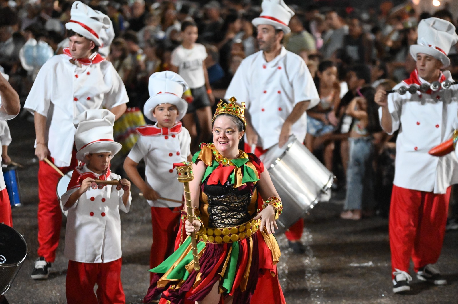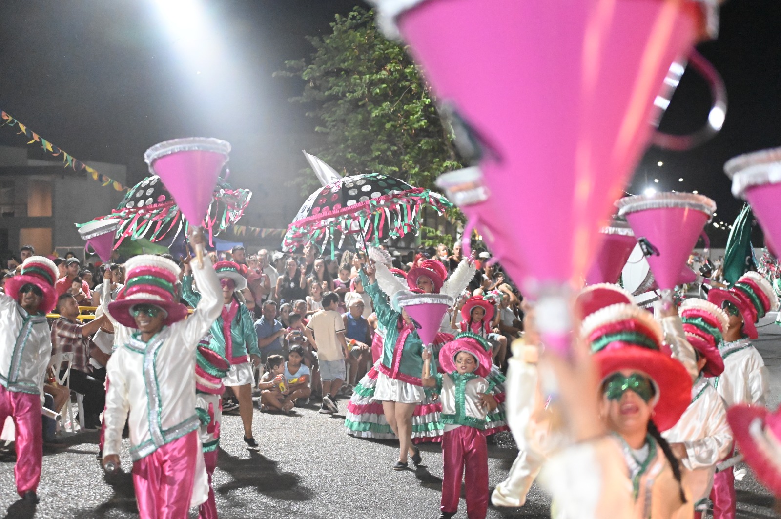 La noche contó con la presencia de autoridades municipales, entre ellas el secretario de Desarrollo Humano, Juan Ignacio Olano; el subsecretario de Cultura, Deportes y Juventud, Luis Castillo; y el concejal Juan Pablo Castillo, quienes acompañaron el desfile y el trabajo de las distintas agrupaciones.