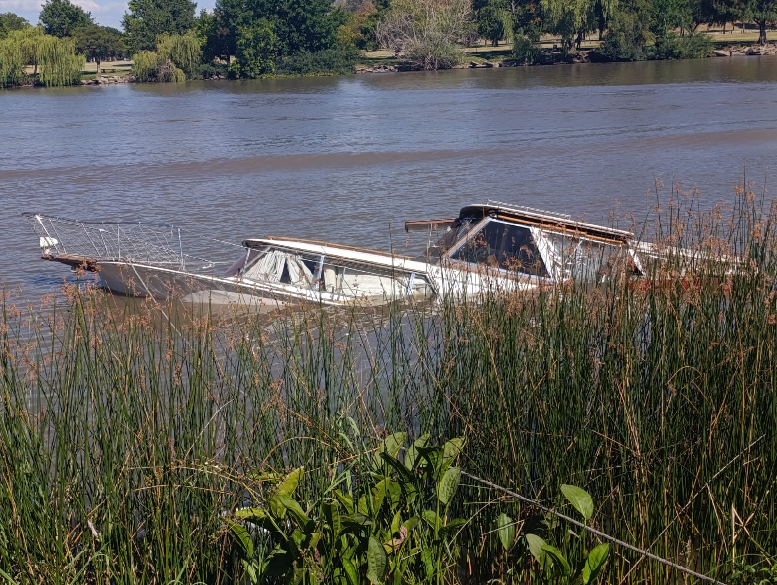 El hecho se registró cerca de las 15 horas de este sábado, momento en que personal de la Guardia Ambiental fue convocado para intervenir en el lugar. Como medida preventiva, se dispuso la colocación de una barrera de contención ante la eventual pérdida de combustible, dado que se constató la presencia de hidrocarburos en el agua, aunque sin detectarse un derrame de gran magnitud.