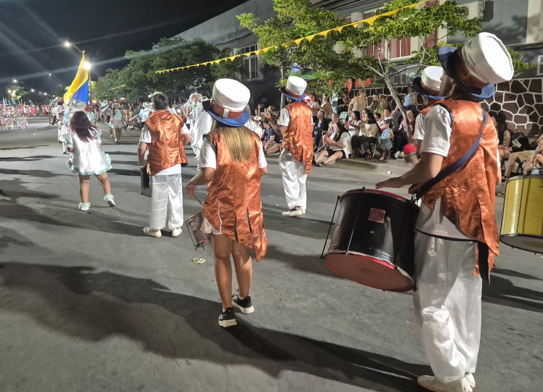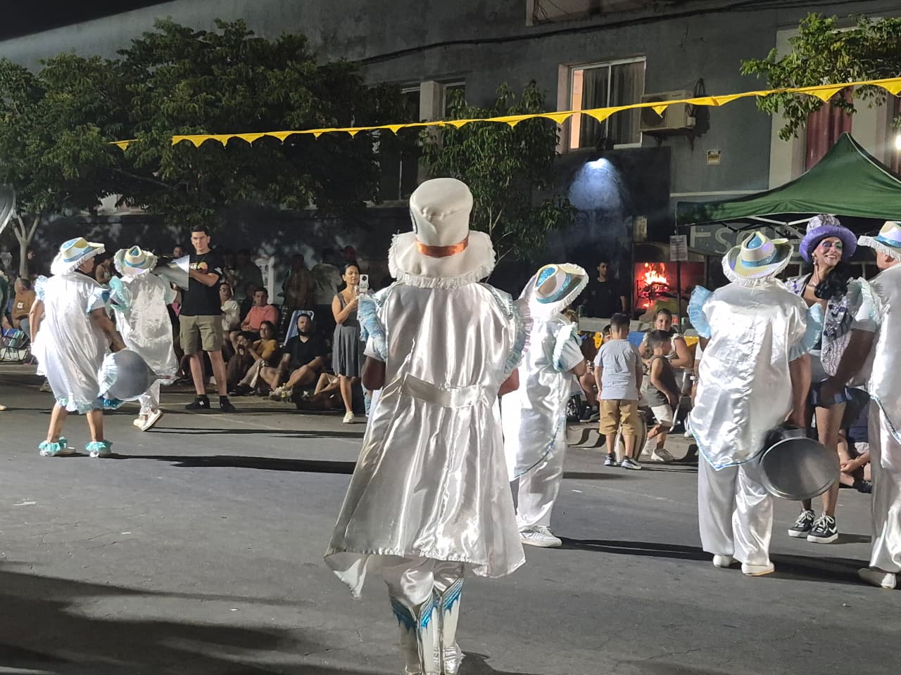 Vecinos acompañaron la celebración desde las veredas, muchos de ellos sentados en reposeras, disfrutando del paso de murgas, grupos de baile y comparsas, en una verdadera postal festiva y comunitaria.