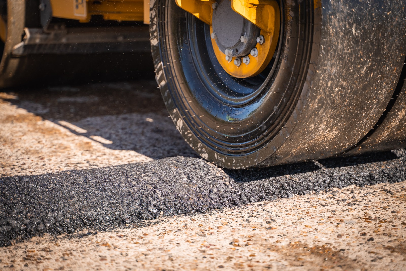 El material se colocó por fajas, con distribución controlada y posterior compactación mecánica mediante rodillo neumático y equipos manuales, lo que asegura una correcta adherencia sobre el pavimento existente y una terminación uniforme.