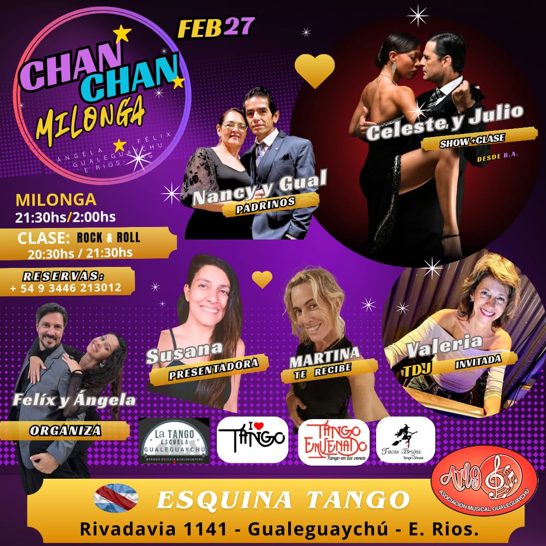 El próximo 27 de febrero se realizará Chan Chan Milonga en la Asocición Musica. La clase de iniciación al Rock and roll y tango, balanceo estilo Villa Urquiza, será a las 20:30 h.