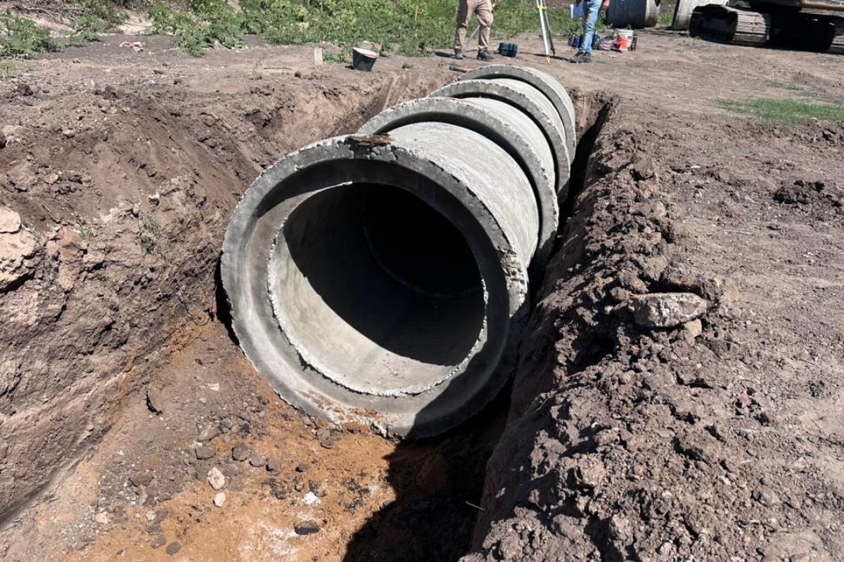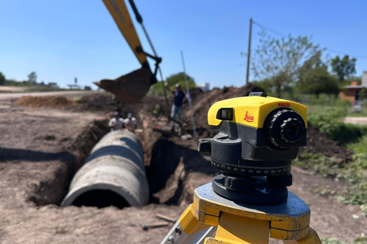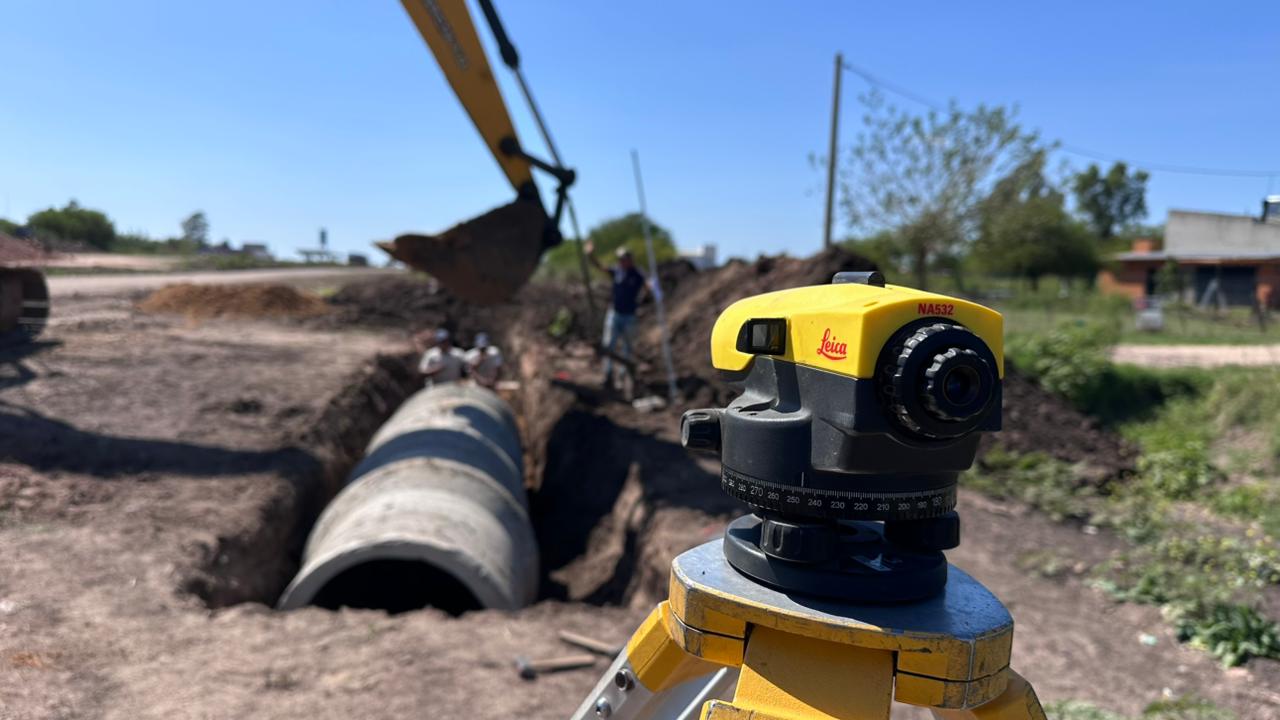 La tarea requiere de excavaciones de profundidad considerable, la conformación de una base estabilizada y la colocación de conductos premoldeados de hormigón. Para su emplazamiento se emplean retroexcavadoras de gran porte, equipos de izaje y dispositivos topográficos que aseguran cotas precisas y pendientes adecuadas para el escurrimiento. Cada pieza se asienta sobre una cama compactada, con control técnico permanente en el alineamiento y nivelación.