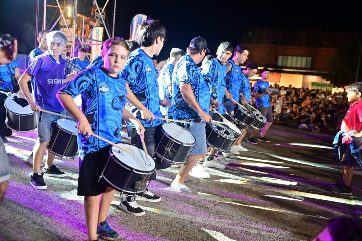 La apertura estuvo a cargo de la Batucada Los Pibes; luego fue el turno de Las Audaces; más tarde se presentó Batería Aplanadora y el cierre lo realizó Sonido de Parche. Las pasistas invitadas, Martina Ghiglia y Rosario Sánchez, junto a pasistas de la comparsa Amancay de Urdinarrain, aportaron brillo y cercanía, bailando junto a decenas de niños que imitaban cada movimiento a pocos metros del escenario, mientras Toque de Samba hizo cantar al público con cada una de sus canciones.