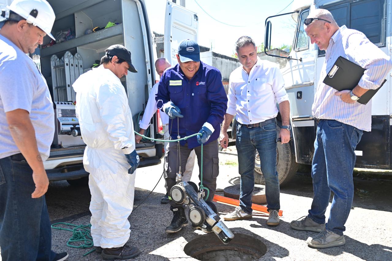 En este contexto, el intendente Mauricio Davico supervisó el despliegue del dispositivo y observó en tiempo real las imágenes obtenidas desde el interior de los conductos, lo que permitió evaluar sectores del sistema de drenaje que desde hace años presentan dificultades estructurales y generan olores nauseabundos.