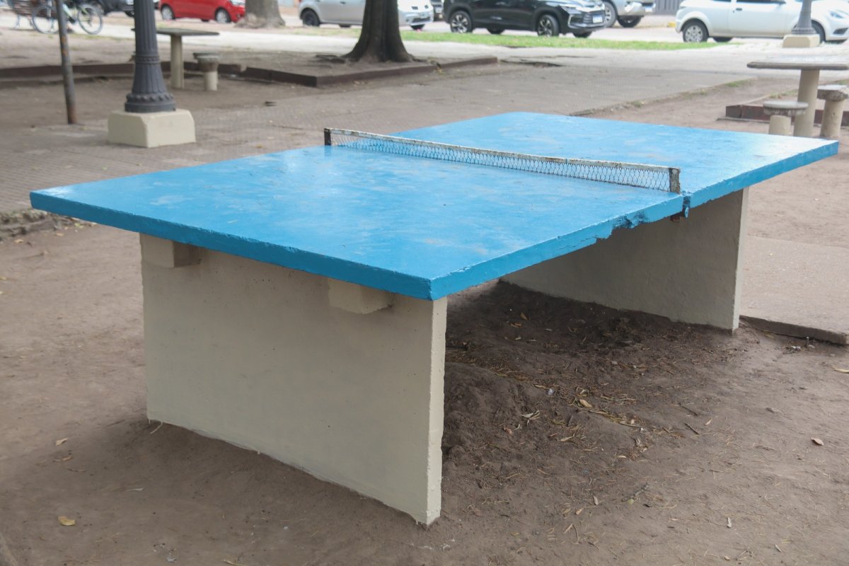 El plan de mantenimiento también alcanzó a mesas, bancos y superficies destinadas a actividades recreativas, entre ellas las mesas de ping pong.