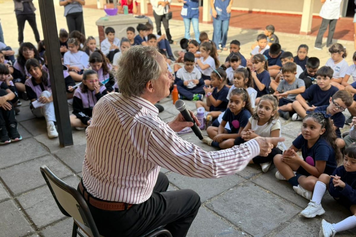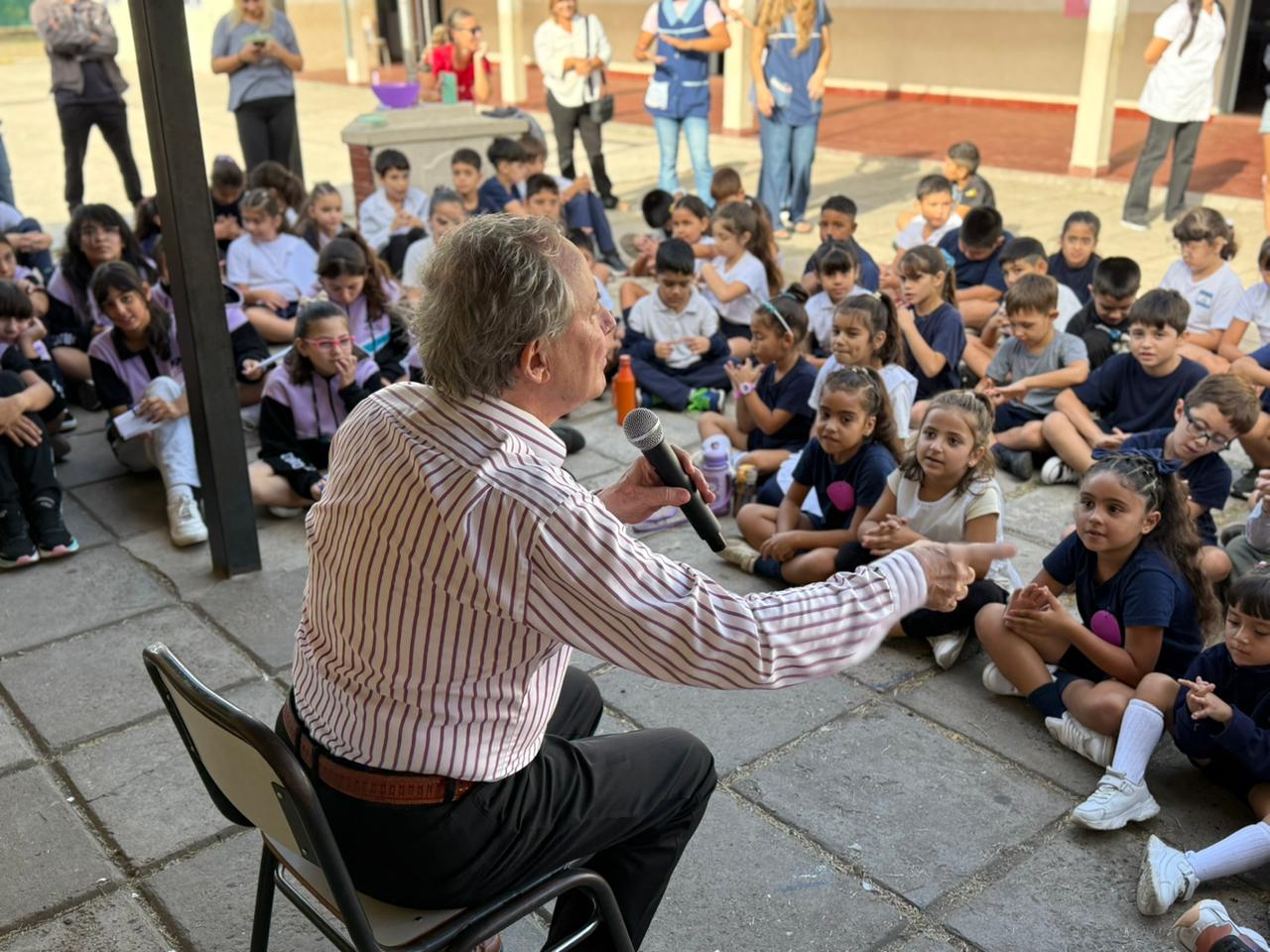 Hace unos días, en las escuelas se repitió una escena sencilla y poderosa. Los chicos gritaban su nombre, lo rodeaban, lo abrazaban y le pedían autógrafos. No había distancia ni ceremonia. Había entusiasmo. Y él se emocionaba al comprobar que, después de tantos años, seguía ocupando un lugar vivo en la memoria de la ciudad.