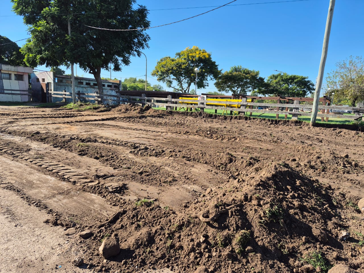Las tareas contemplaron el retiro completo del suelo vegetal con retroexcavadora y camiones. Luego se ejecutó la nivelación de la superficie y la compactación de la subrasante, instancia clave para corregir deformaciones previas y garantizar una base uniforme sobre la cual se apoya la estructura final, un proceso que define la estabilidad del conjunto y permite avanzar con precisión en las etapas posteriores.