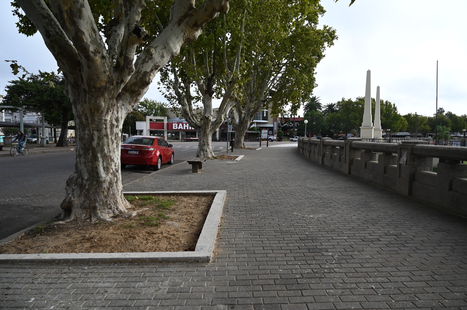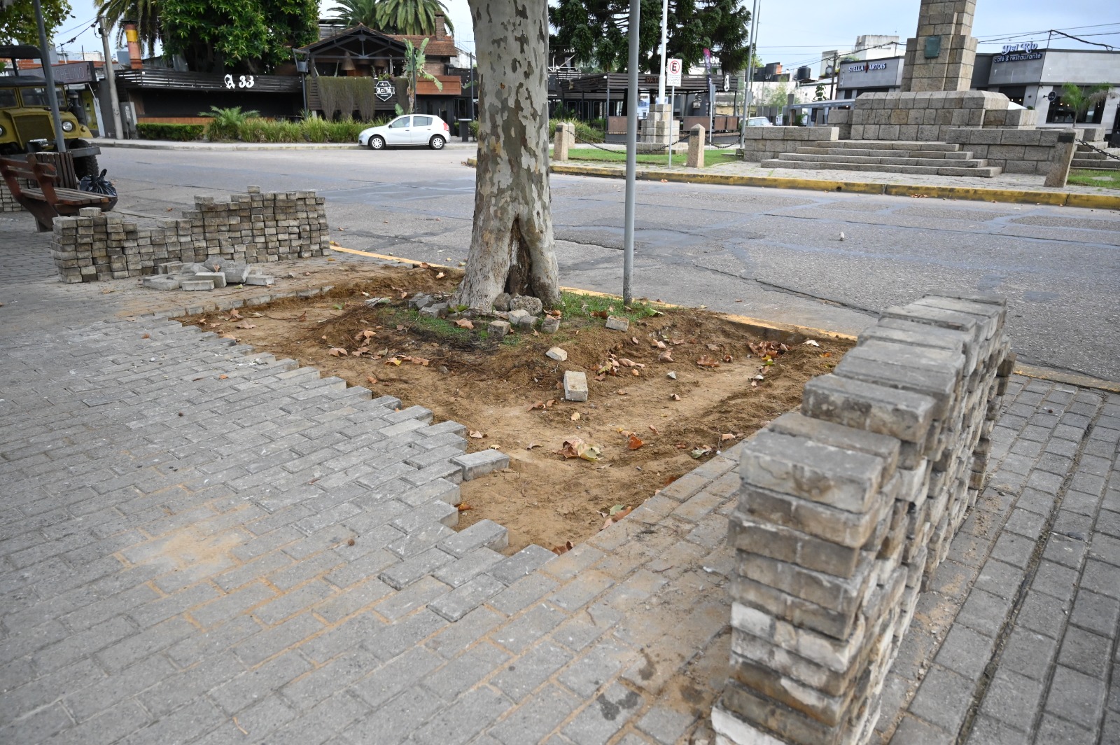 En paralelo, sobre la vereda de la Costanera se amplían los canteros para otorgar mayor volumen de suelo a las especies implantadas, ya que esta adecuación busca encauzar el desarrollo radicular y evitar que, en el corto o mediano plazo, vuelvan a producirse levantamientos o deformaciones en la superficie de circulación.